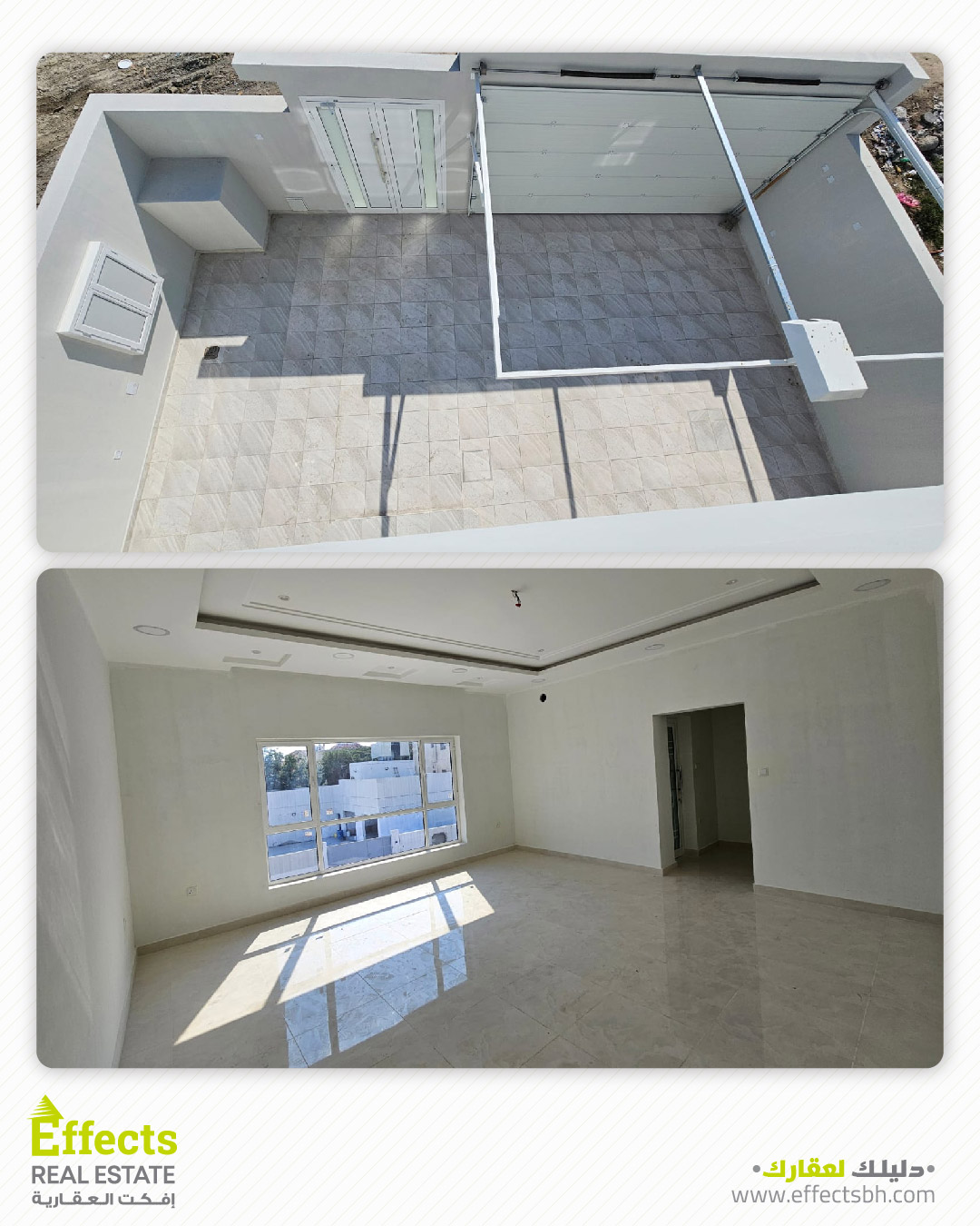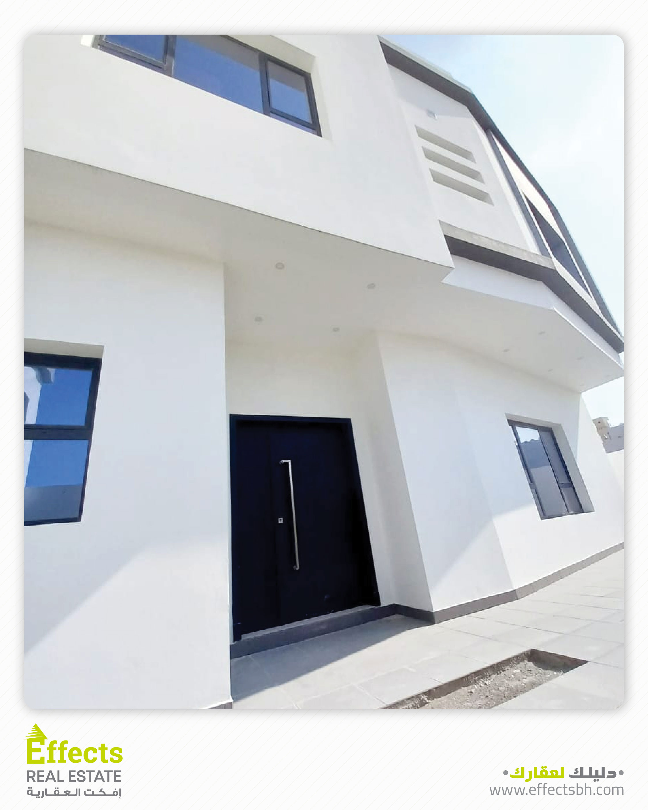 فيلا مميزة للبيع الموقع: سند مواصفات الفيلا: مساحة الأرض: 180 متر مربع مساحة البناء: 270 متر مربع عدد الطوابق: 2.5 3 غرف نوم 4 حمامات صالتان مطبخان حديقة كراج يتسع لسيارتين السعر: 130,000 دينار بحريني